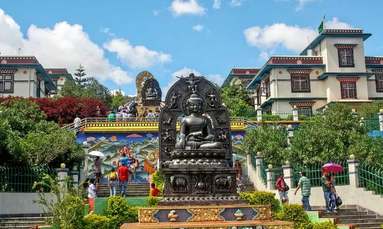 The complex is home to several small beautifully-carved temples, statues, flags and Buddhist prayer wheels and is visited by Hindu and Buddhist devotees.